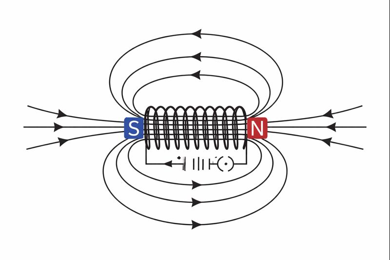Moreover, the poles of a solenoid can be located through the use of a magnet. If the north pole of a magnet is brought very close to the solenoid end that is wired to the battery’s negative terminal, the bar magnet will be pushed away. Now, if we remember the fact that like poles do repel each other, it indicates that the end which is wired to the negative terminal behaves as the north pole of the solenoid. Thus, the end that is connected to the positive terminal acts as the south pole of the solenoid.